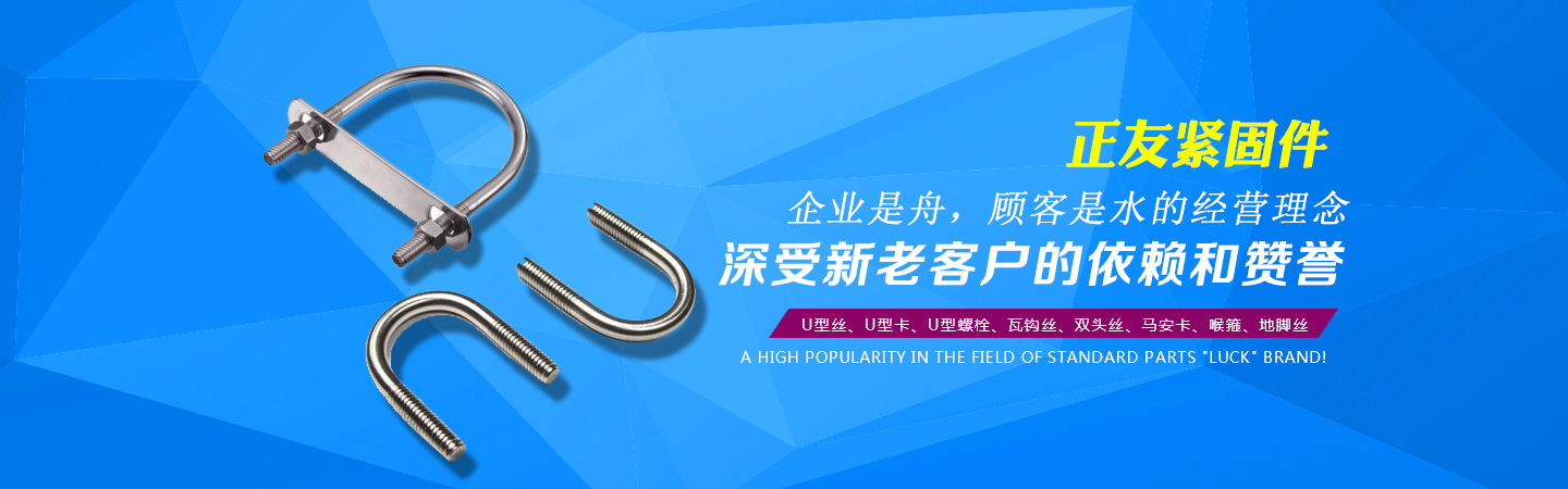 河北正友緊固件制造有限公司(原永年縣河北鋪天緣緊固件廠)坐落在永年縣河北鋪工業(yè)區(qū),地理位置優(yōu)越,交通便利。自1994年建廠至今,在各界人士的關(guān)懷和新老客戶的擁護及全廠員工的努力下,企業(yè)日益發(fā)展壯大,產(chǎn)品不斷更新,以U型絲、U型卡、U型螺栓、瓦鉤絲、雙頭絲、馬安卡、喉箍、地腳絲等產(chǎn)品的過硬質(zhì)量,創(chuàng)下在標(biāo)準(zhǔn)件領(lǐng)域知名度較高的“正友”品牌! 為答謝新老客戶長期以來對我廠的幫助與信任,我廠在提高質(zhì)量的同時,更是加強了產(chǎn)品售后服務(wù)的力度!以“企業(yè)是舟,顧客是水”的經(jīng)營理念,鑄就“正友”日后的輝煌之路!